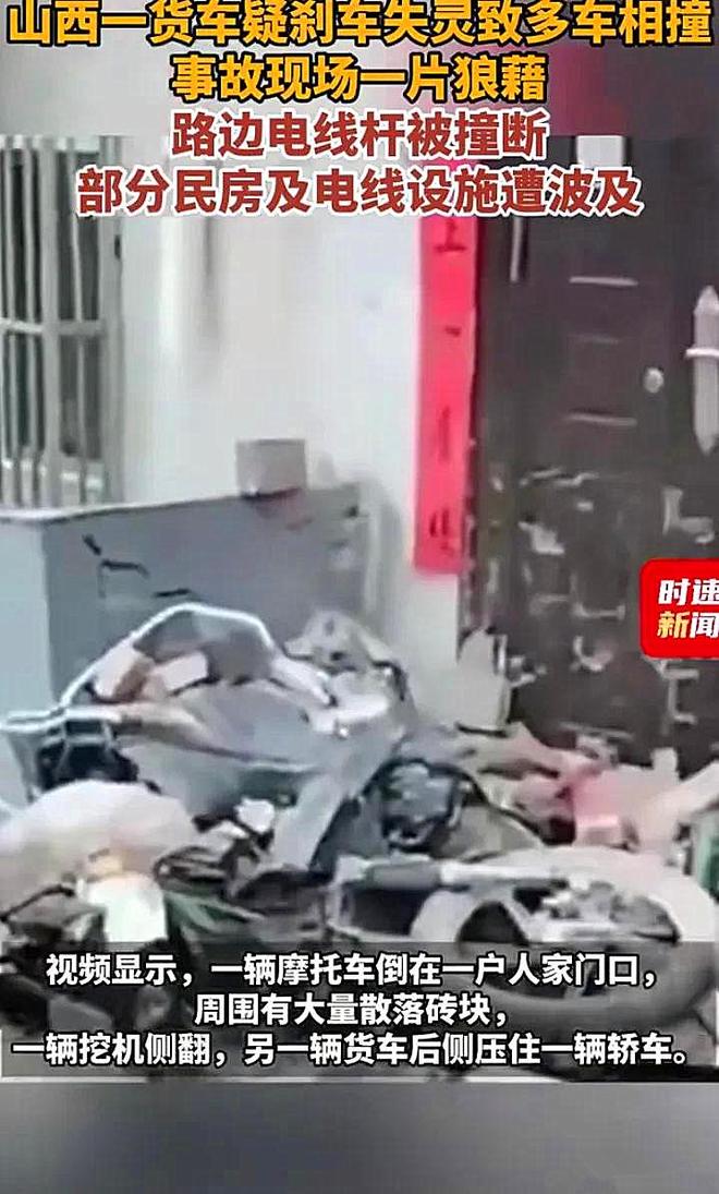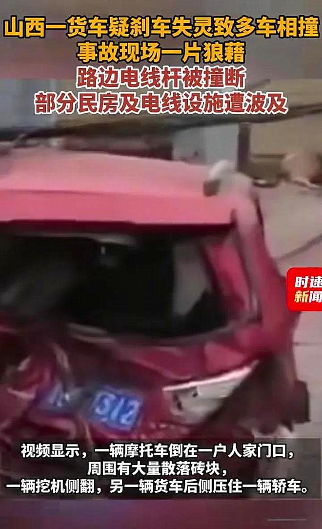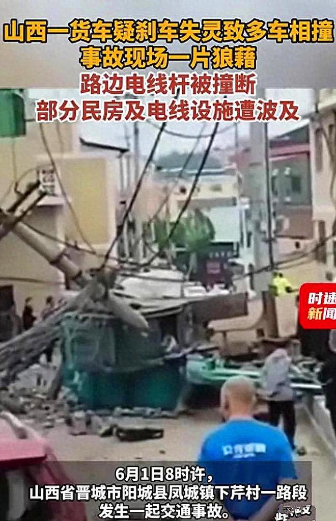 说起来这事儿发生的地点还挺特殊,就在晋城下芹村的路口。当时货车司机估计也吓蒙了,这么大一个货车失控,换谁都慌神。据旁边目击的村民说,货车下坡时速度越来越快,司机拼命按喇叭,可刹车就是不管用,先是撞上路边停着的轿车,接着“砰”地一下撞在民房墙上,最后撞断电线杆才侧翻停下。更吓人的是,车上拉的挖掘机因为惯性直接滚了下来,好在没砸到人,不然后果真不敢想。