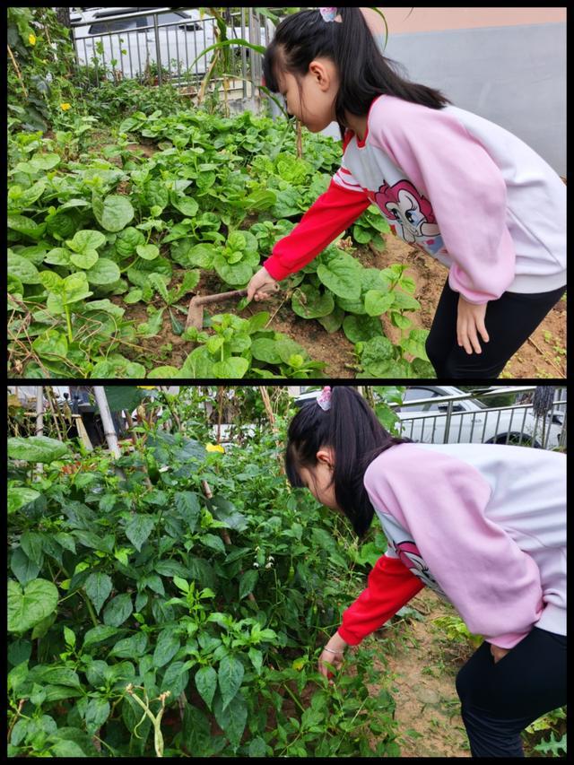 三年级的学生走进田间,家长化身“田间课堂”的引路人,带领同学们认识各类农作物,讲解生长过程和营养价值。“这是茄子,那是黄瓜!”“原来红薯是长在土里的!”孩子们一边观察一边记录,在互动问答中增长农业知识。大家亲手采摘新鲜果蔬。弯腰拨开绿叶寻找黄瓜,小心翼翼摘下饱满的番茄……汗水与欢笑中,学生体会到“粒粒皆辛苦”的真谛。