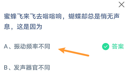 解析:因为它们翅膀扇动的频率不一样,蝴蝶慢而蜜蜂的很迅速;蝴蝶慢翅膀扇动慢,频率低,而蜜蜂的翅膀扇动快,频率高。 人的听觉在一定的频率范围内,蝴蝶翅膀扇动频率太低,人类听不到;蜜蜂的翅膀扇频率高,在人类听觉频率范围内九游体育。